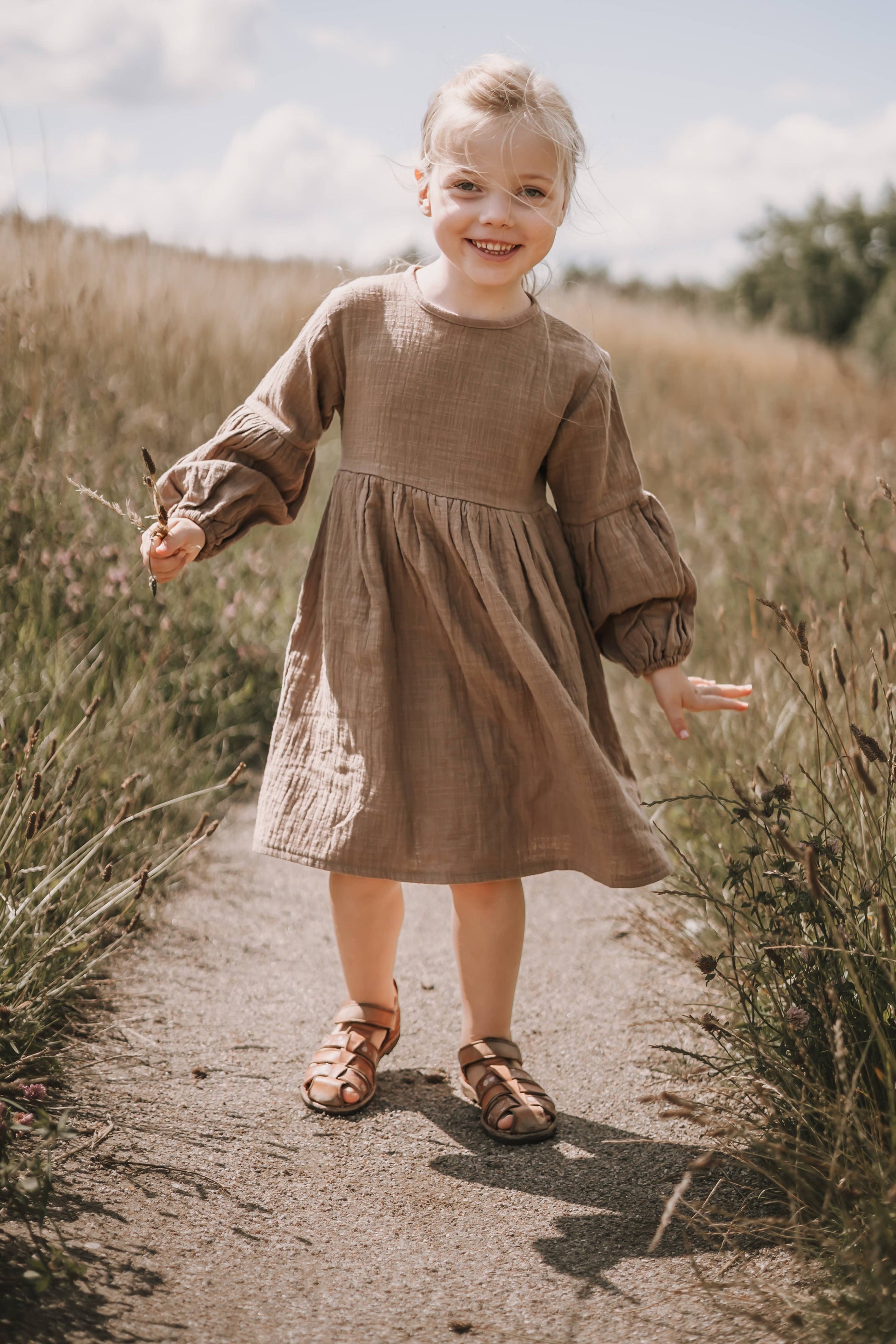 Delightful organic cotton dress available in two different earth tones. Material: 100% organic cotton.