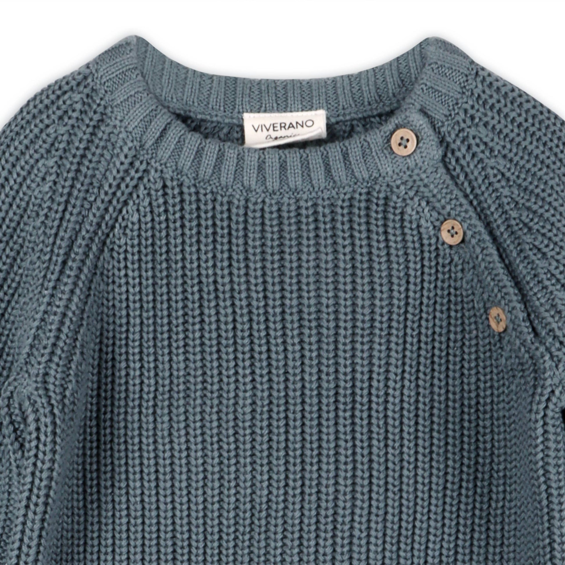 100% organic cotton chunky sweater knit baby pullover with buttons.