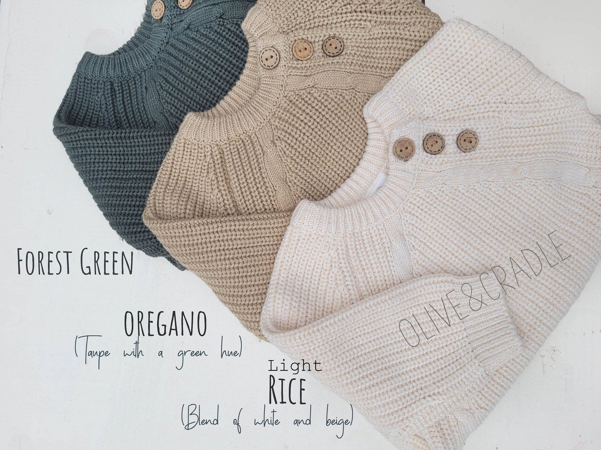 Chunky Knit Baby Romper - 100% Cotton Keep your baby cozy with our long sleeve, chunky knit romper made from 100% cotton. This adorable romper is perfect for special occasions, photoshoots, and as a gift for expecting parents. Features: -Gender Neutral designs and colors - Long sleeves for warmth - Off-the-shoulder design with side buttons for easy dressing - Snaps on the bottom for quick diaper changes