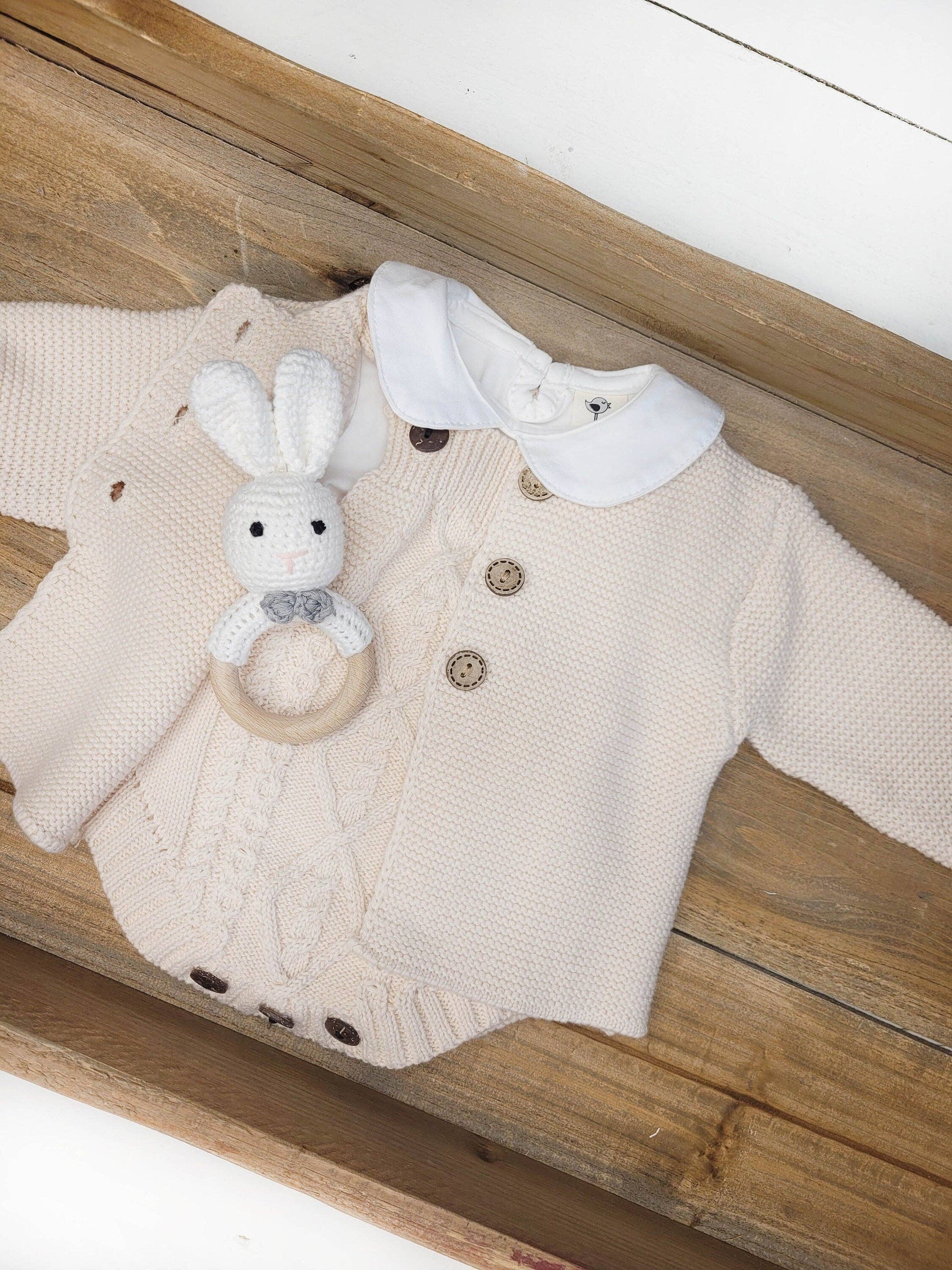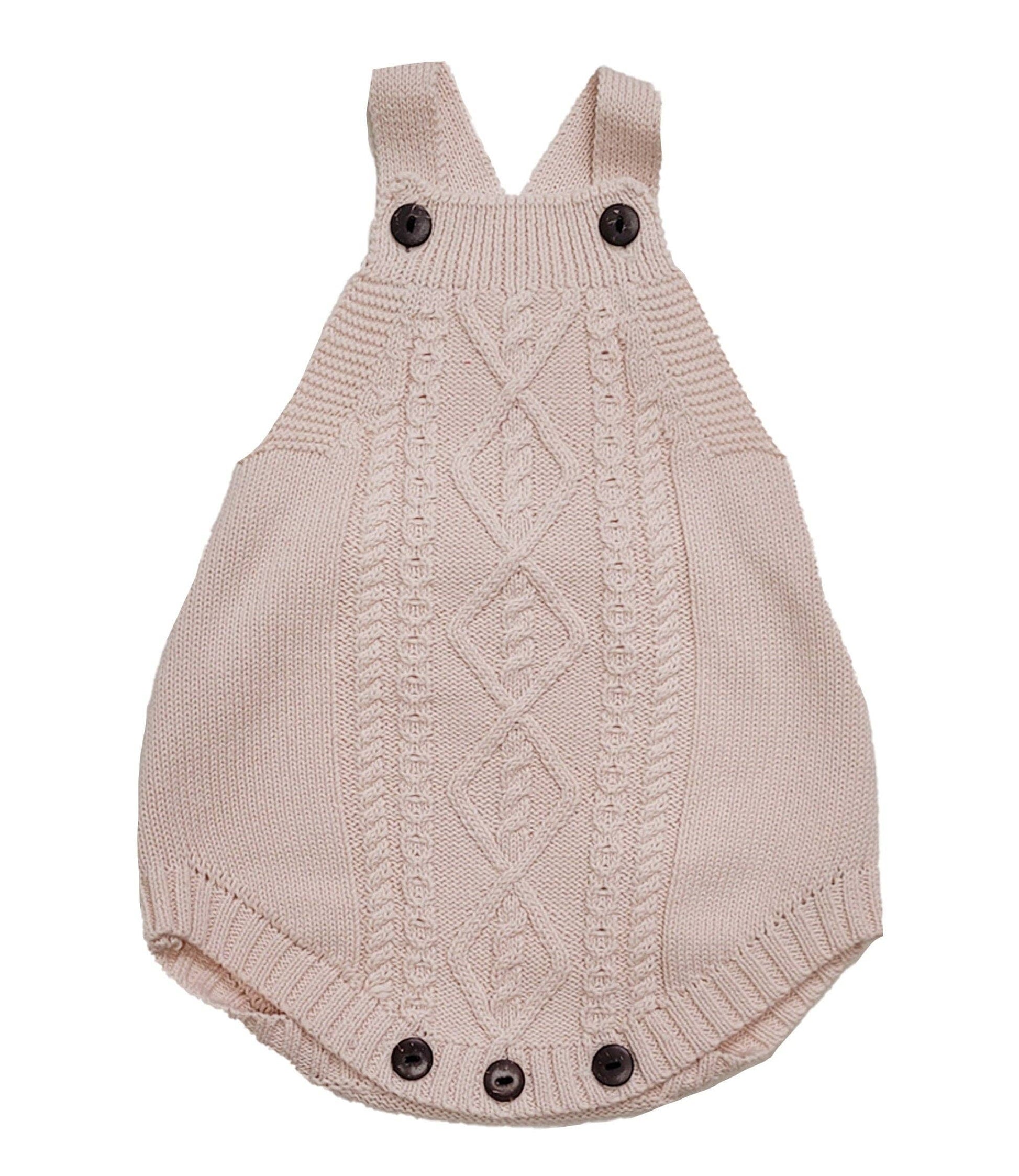 The Hailey Cable Knitted Romper combines cozy comfort with adorable style, perfect for the cooler seasons. Made from warm cotton, this sleeveless romper is ideal for fall and winter wear. The cable knit design adds a charming touch, while the dressy romper style is both fashionable and practical. The Hailey Knit romper is a must-have for your little one's wardrobe, keeping them snug and stylish all season long. 100% Cotton Knit Baby Sleeveless Romper