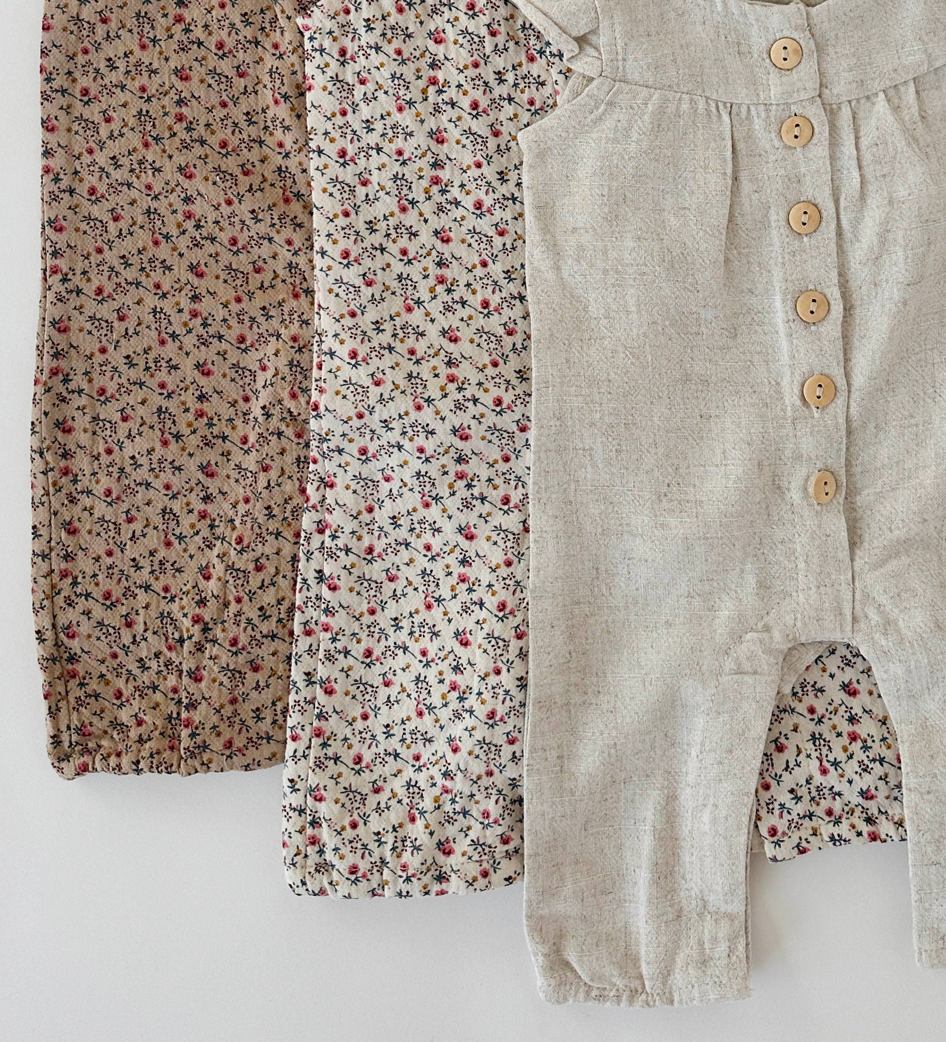 Elevate your baby girl's wardrobe with this charming Jennifer Jumpsuit. Made in two different fabrics, a soft and breathable Cotton Muslin or Cotton Linen blend. Key Features: * Short Sleeve design perfect for warm days * Ruffle detailing adds a touch of sweetness * Wooden Buttoned front for a classic, dressy look * Leg Snaps for easy diaper changing * Ideal for the all seasons
